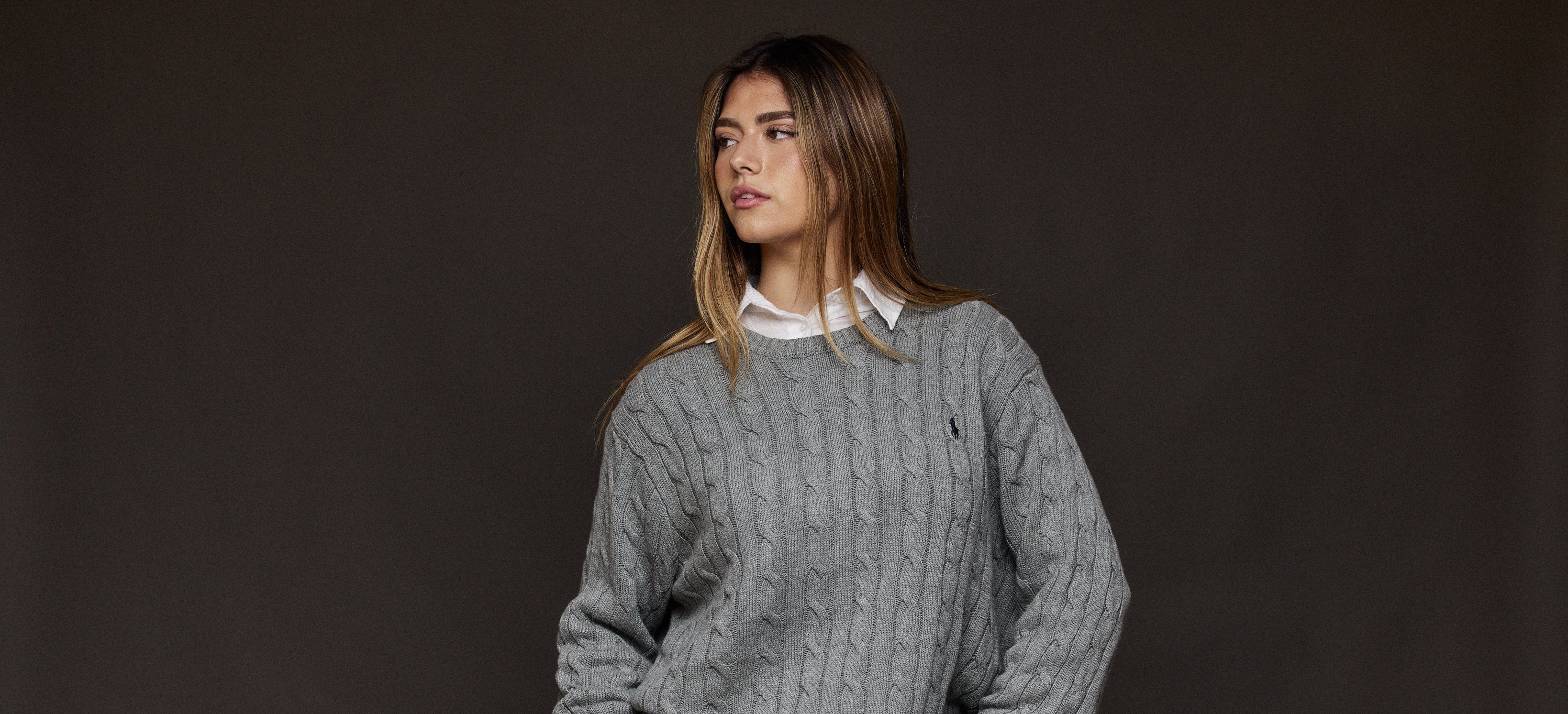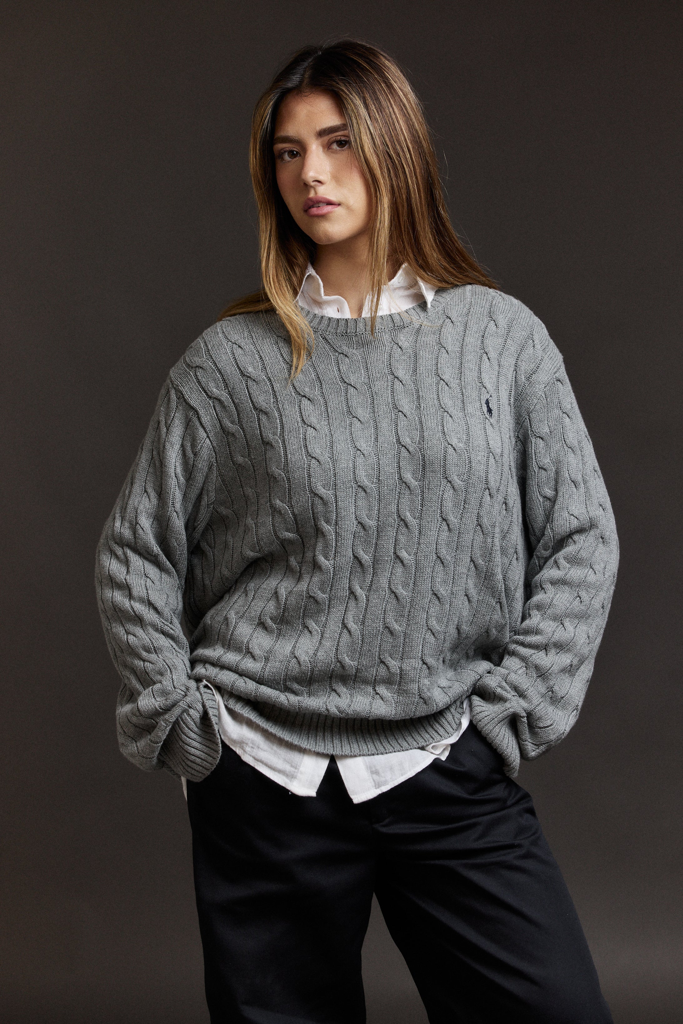 סריג צמות אפור מכותנה Polo Ralph Lauren