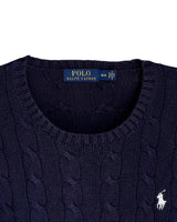 RL Red & Cream Logo V-Neck Cable Knit Sweater