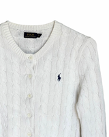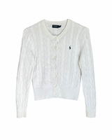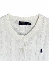 RL White & Navy Logo Cable Knit Cardigan